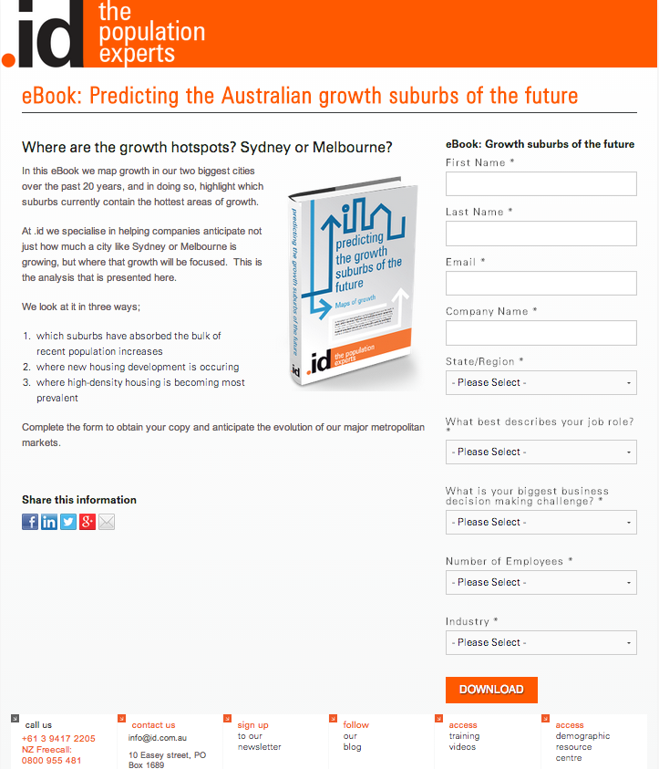 Also, please, if you don’t need the information and don’t intend to use it, then don’t ask the question. If you aren’t going to call someone the first time they download content then don’t ask for a phone number. Do you really need a street address these days? If it’s for data segmentation reasons, would a state or postcode suffice? - Optimise your buttons - Use action oriented words on the buttons, such as “Grab your copy” rather than Submit. If you think about it, no one wants to “submit” to anything. Rather use words that relate to what they will be getting in return, such as “Download your eBook”, or Your free web marketing kit